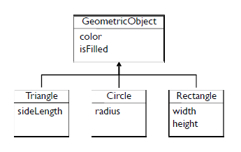 Inheritance is denoted by an arrow with a triangle in diagrams.
